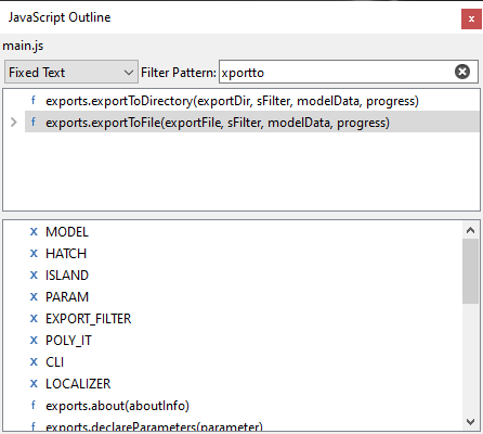 The lower section shows variables and functions in their hierarchical order as they appear in the code top-to-bottom.