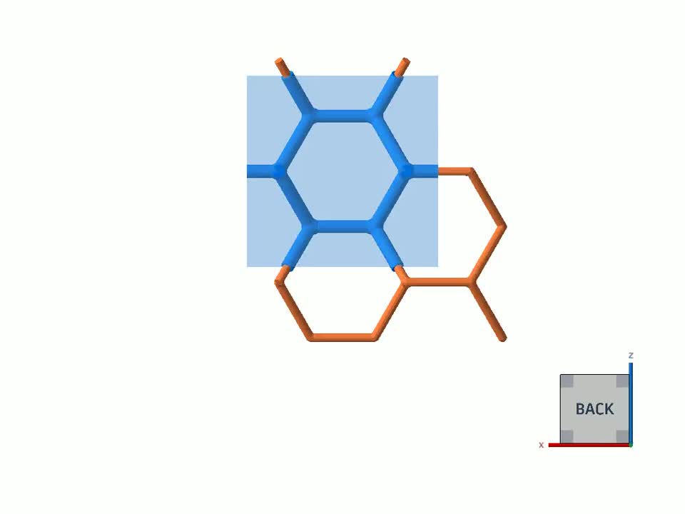 This topology uses two additional layers in the vertical, each with a different offset of unit cell topology, to be in phase again with the origin cell. For clarity, these are not shown in the animation.