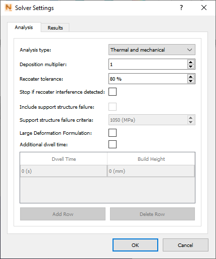 Note that Deposition multiplier has a default value of 1. This means that the simulation will account for only the part or parts on the build plate. We will first solve the simulation with this setting.