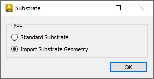 If you choose an LSR file that describes a multi-axis process instead of a 3D process, you are also asked to specify the substrate type. This is either a cuboid derived from the bounding box of the LSR coordinates, or can be from a 3D model file that you load in a subsequent step.