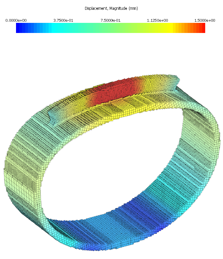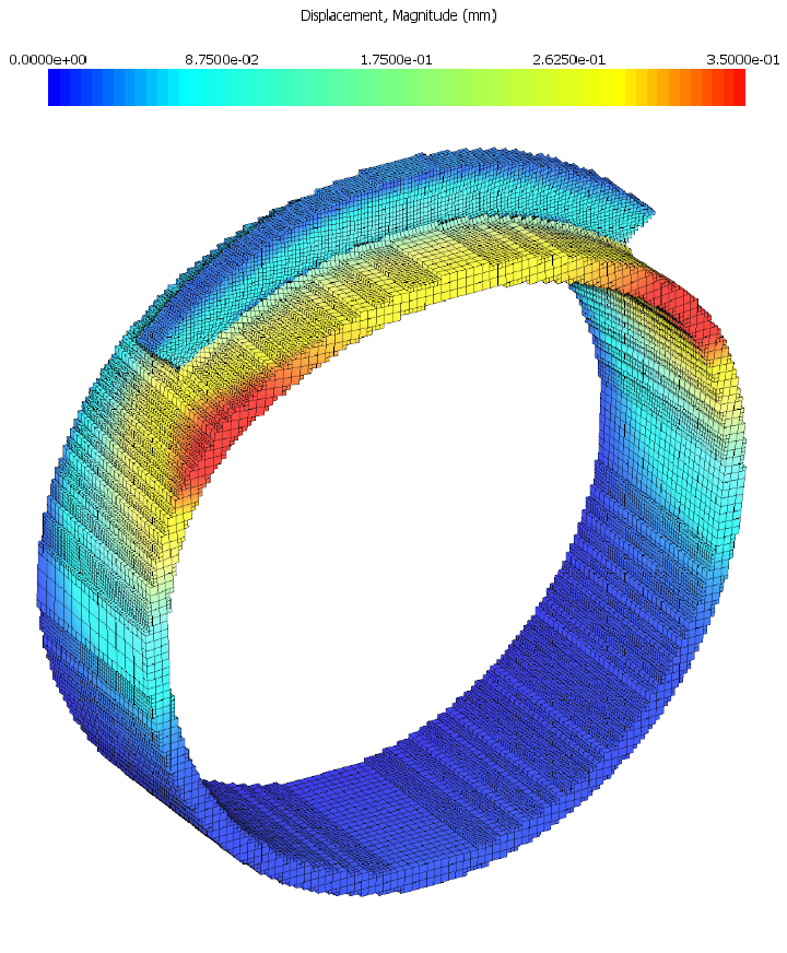 Displacement result (mm) at sample increment #31, after release of the *FISR spring constraints