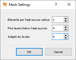 Elements per Heat Source Radius controls mesh density. For stress and distortion simulations, values of 1–2 are reasonable.