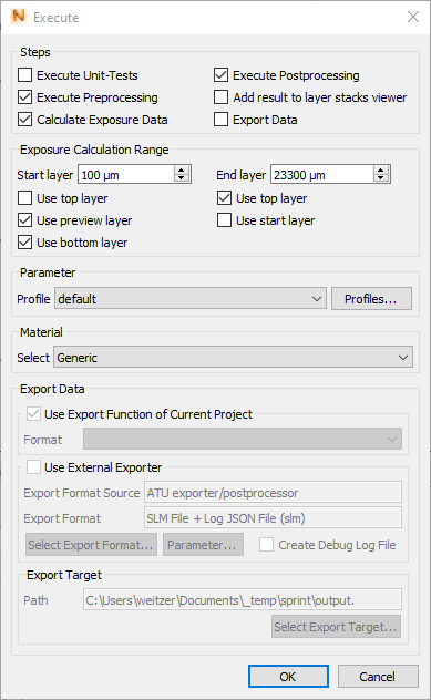 | Profile | A parameter profile must be selected which is then used for the script execution. |