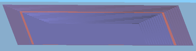 At 1000 micrometers the first and the second hull are generated. The first hull is now an offset region inside the part's border island The third, closed polyline in the middle is the inner loop (the hole) of the second hull. The core is skipped. It is rendered every third layer. |