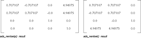 If the selected entity entres is not a nested entity, refstkres is a NULL pointer. This is a convenient way to test whether or not the entity's coordinates need to be translated. (Because xformres is returned as the identity matrix for entities that are not nested, applying it to the coordinates of such entities does no harm but does cost some needless execution time.)