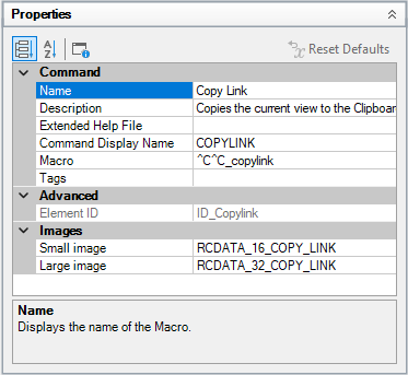The tilde (~) and exclamation point followed by a period (!.) are placed at the beginning of the Copy Link command label in the Name property of the Properties pane. The following is the result of the Copy Link marked and grayed out in the Edit menu.