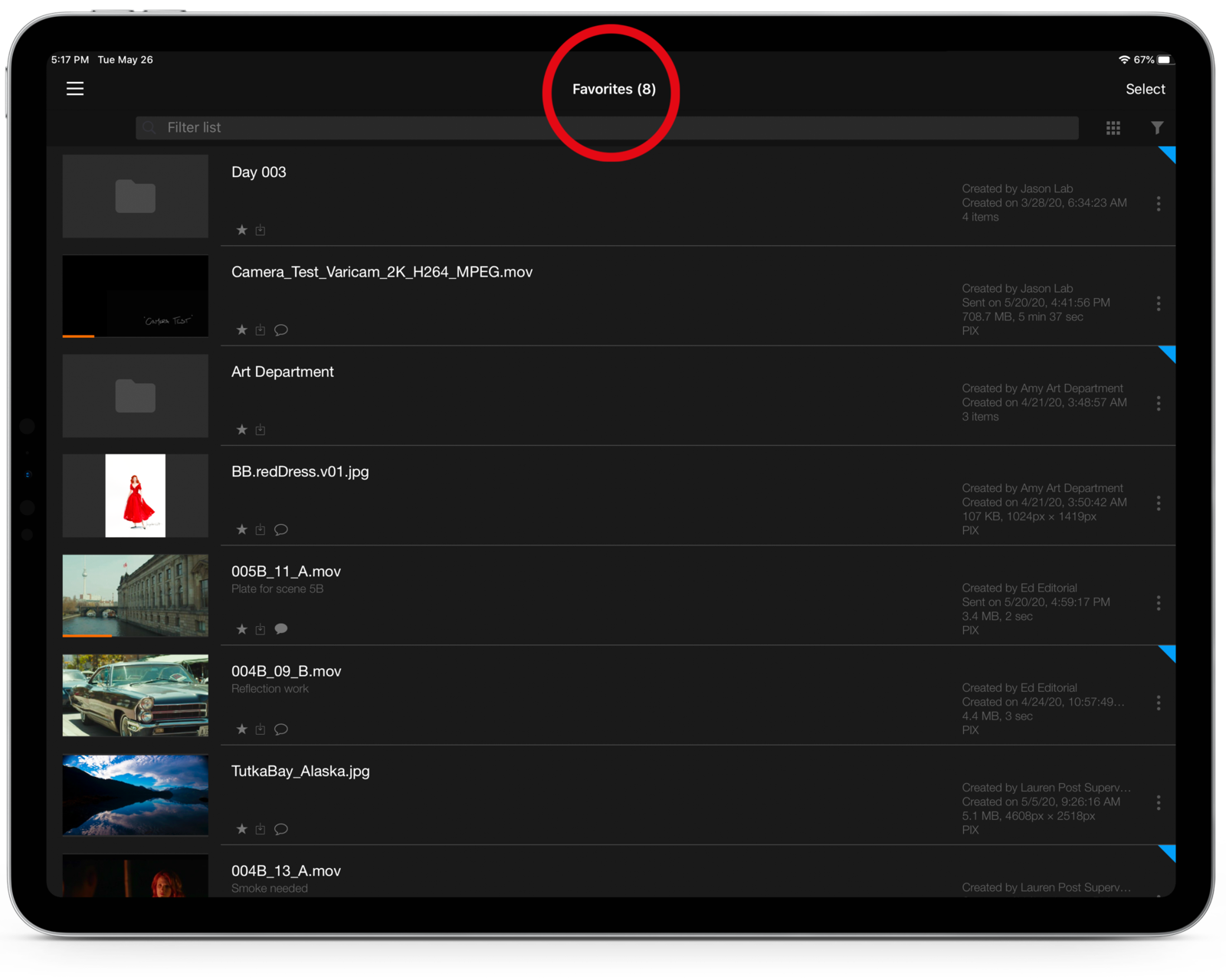 Once the content is tagged as a Favorite, it will also appear in the PIX Favorites section so the user can access it quickly.