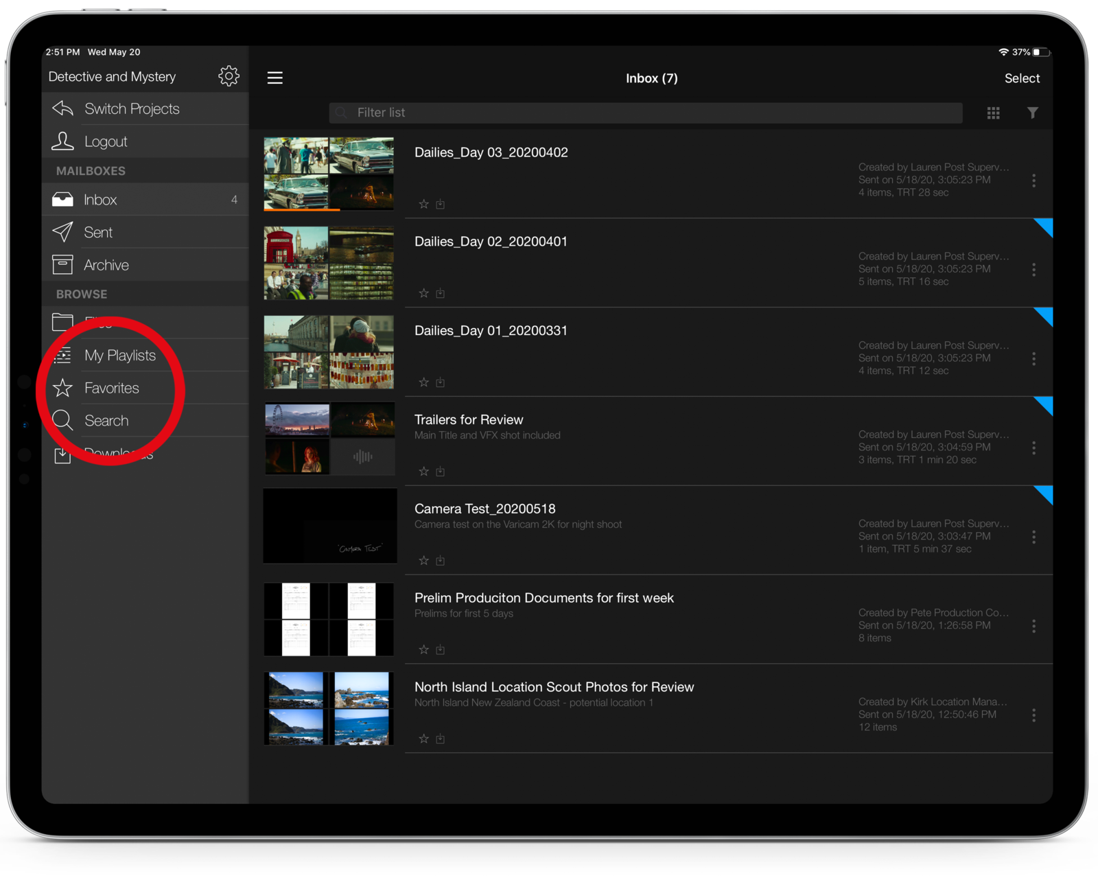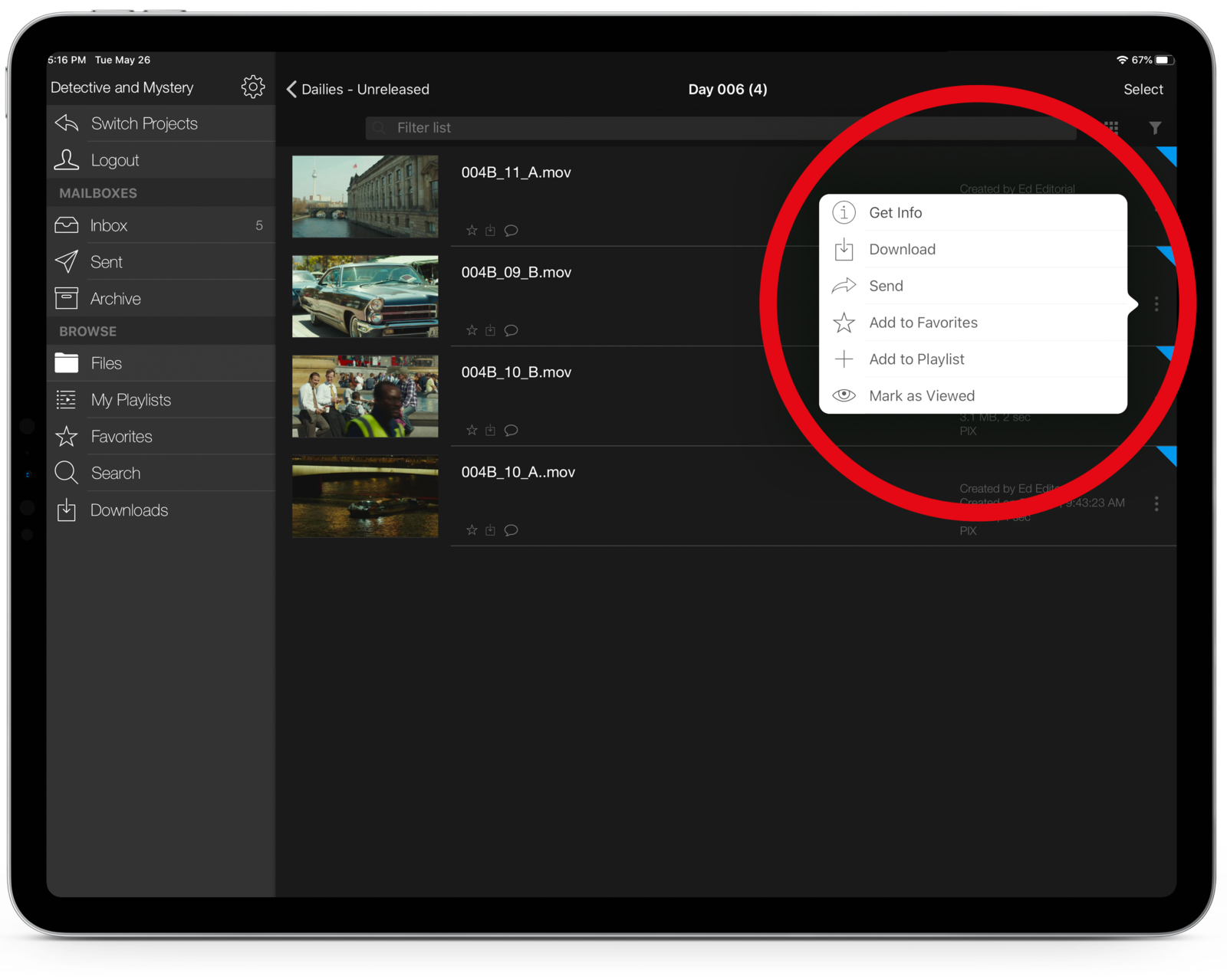 On an iPad, you can also mark favorites while browsing through your inbox files, playlists, and downloads.