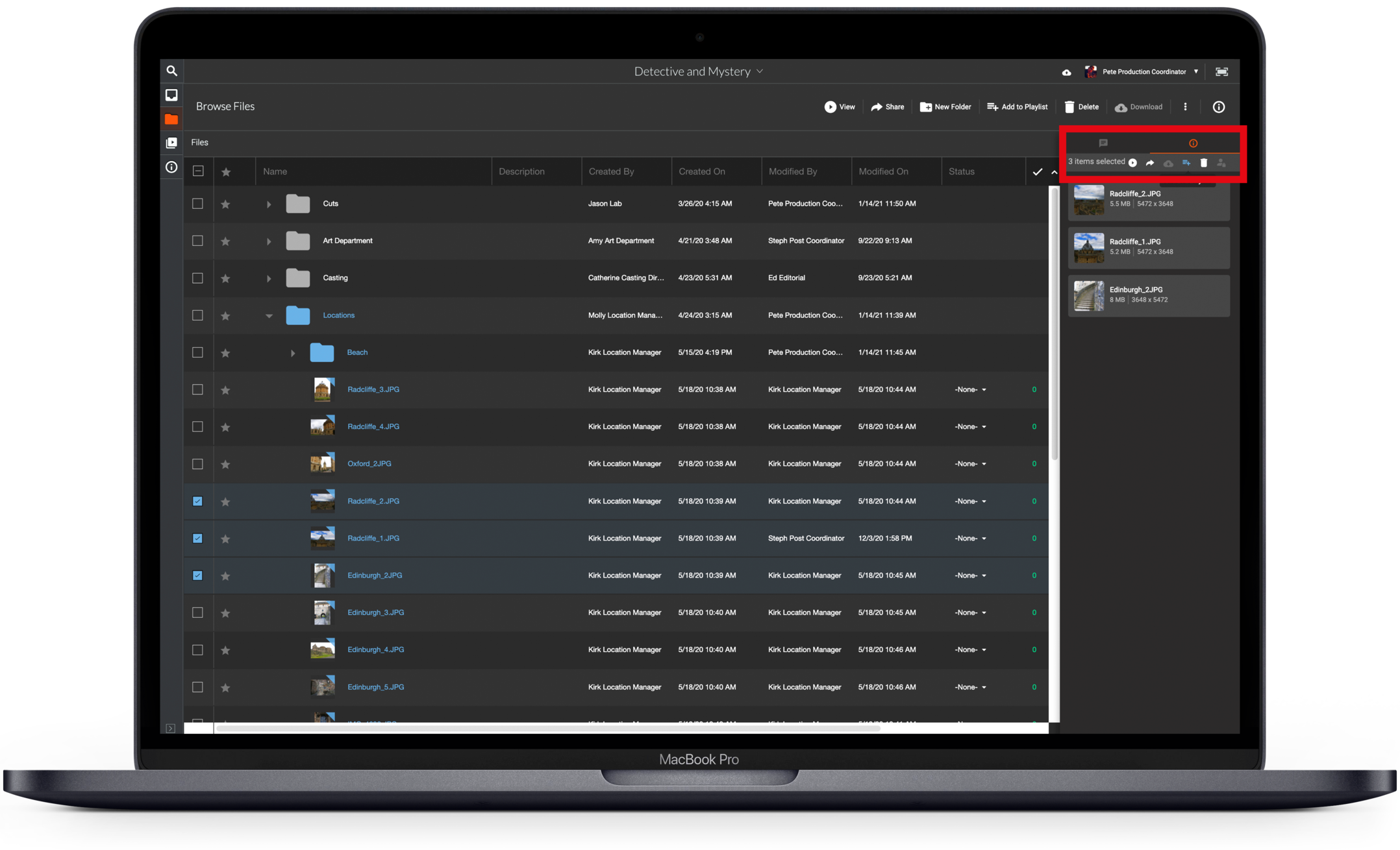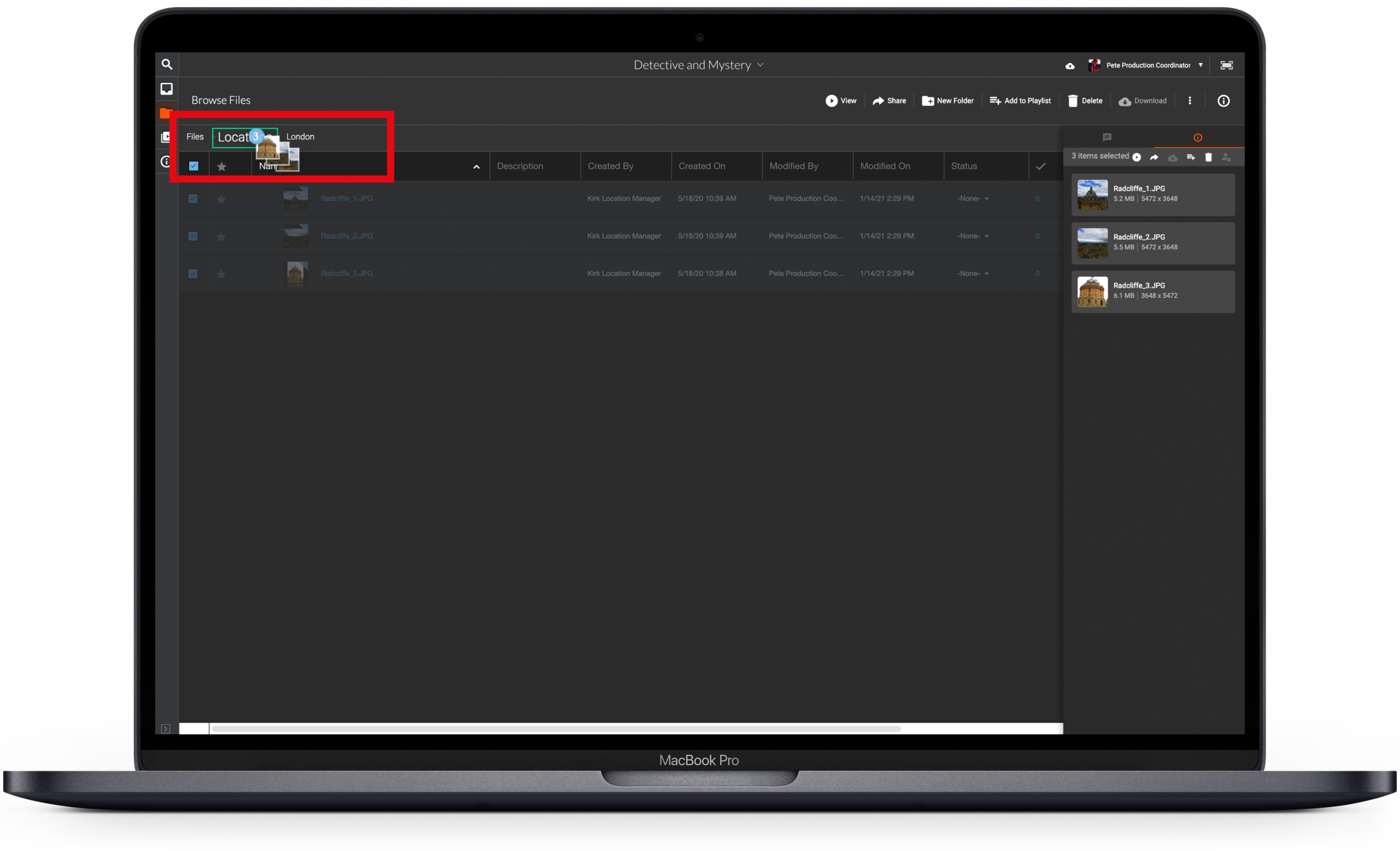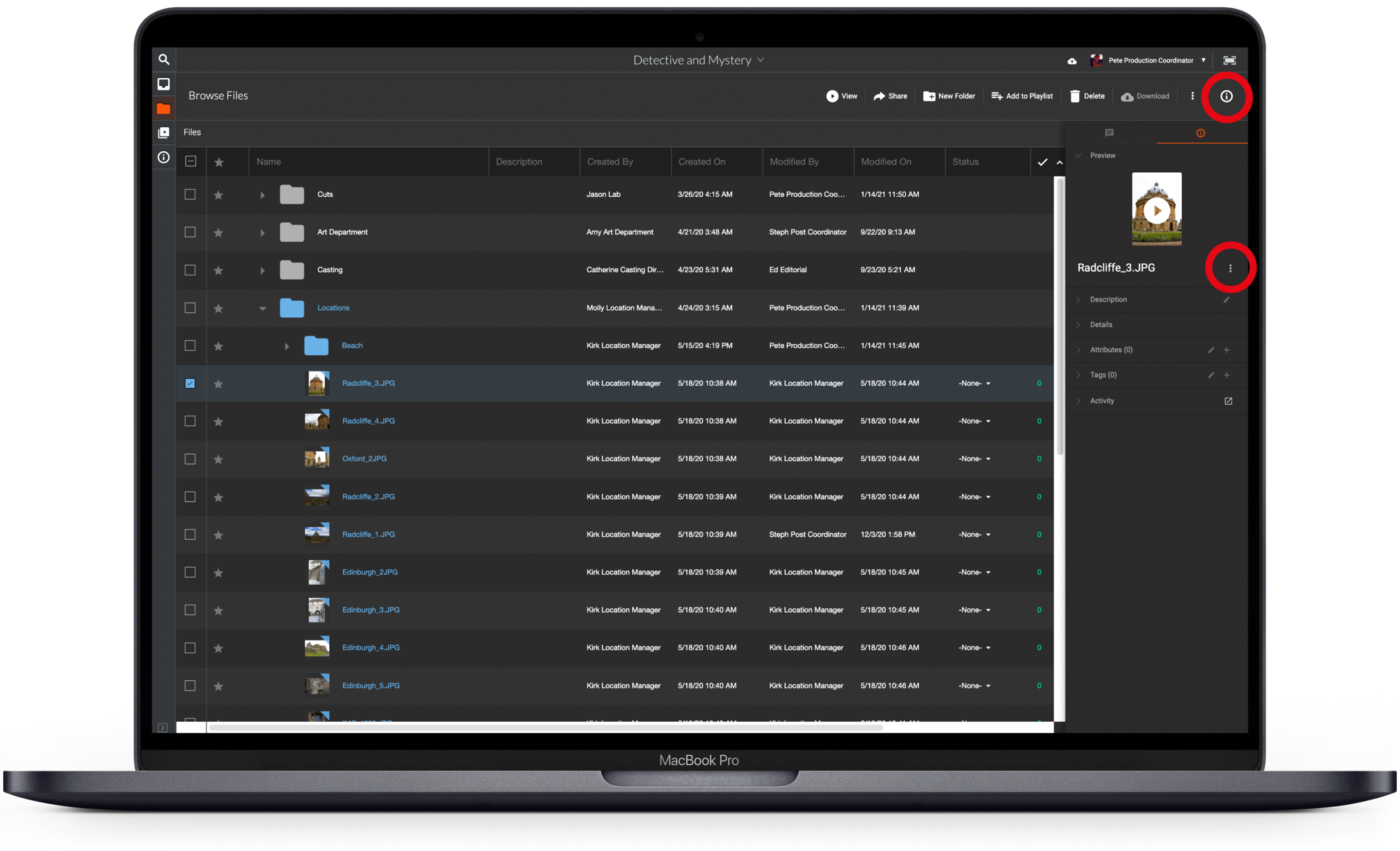 - Status: For files, the status of the file (Circle Take, In Review, etc)