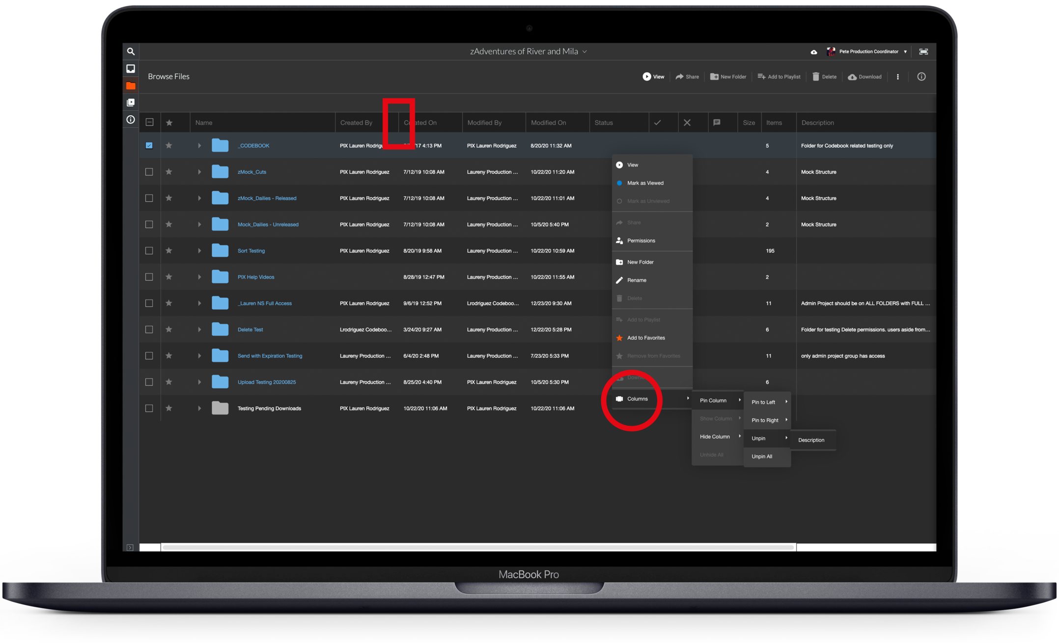 The PIX Files section is where the main folder structure of the project resides. In PIX, individual files are uploaded to folders in this section of the project. The level of access a user has within the files section is dictated by the project’s Gatekeepers.