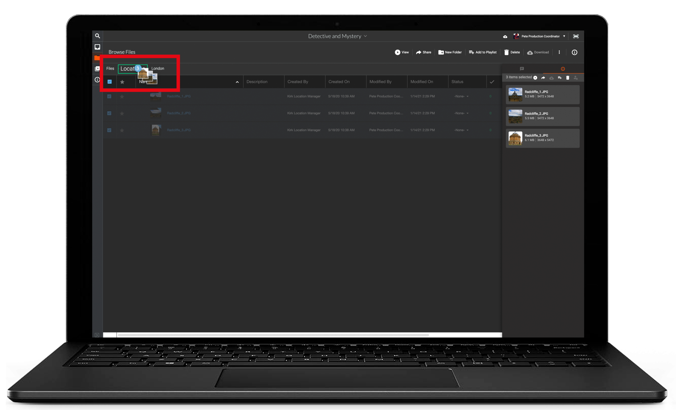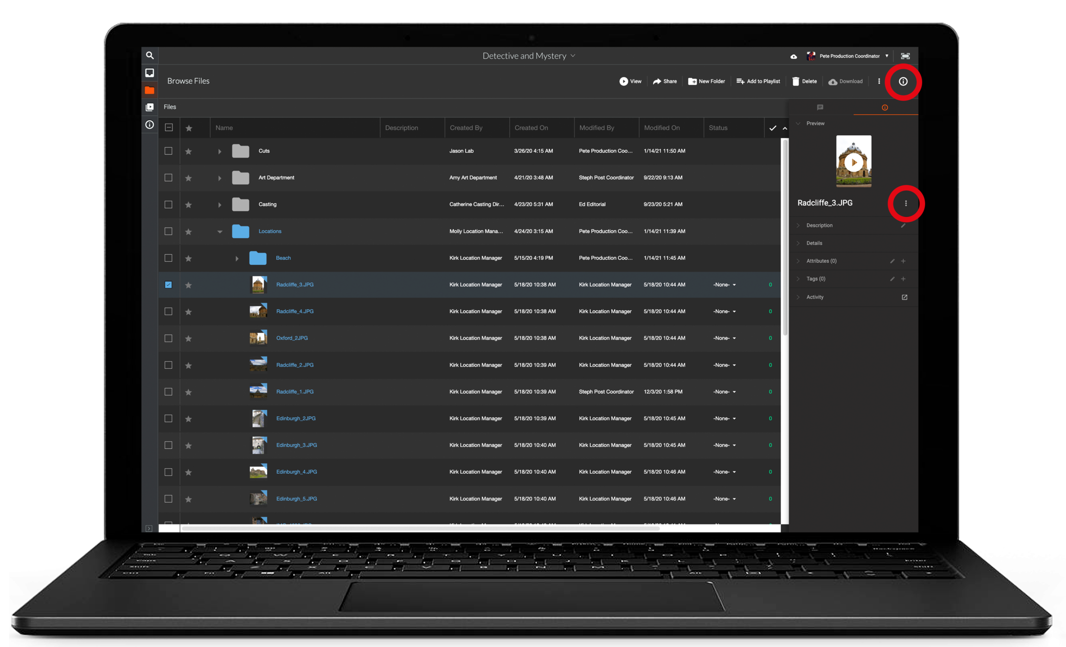 - Status: For files, the status of the file (Circle Take, In Review, etc)