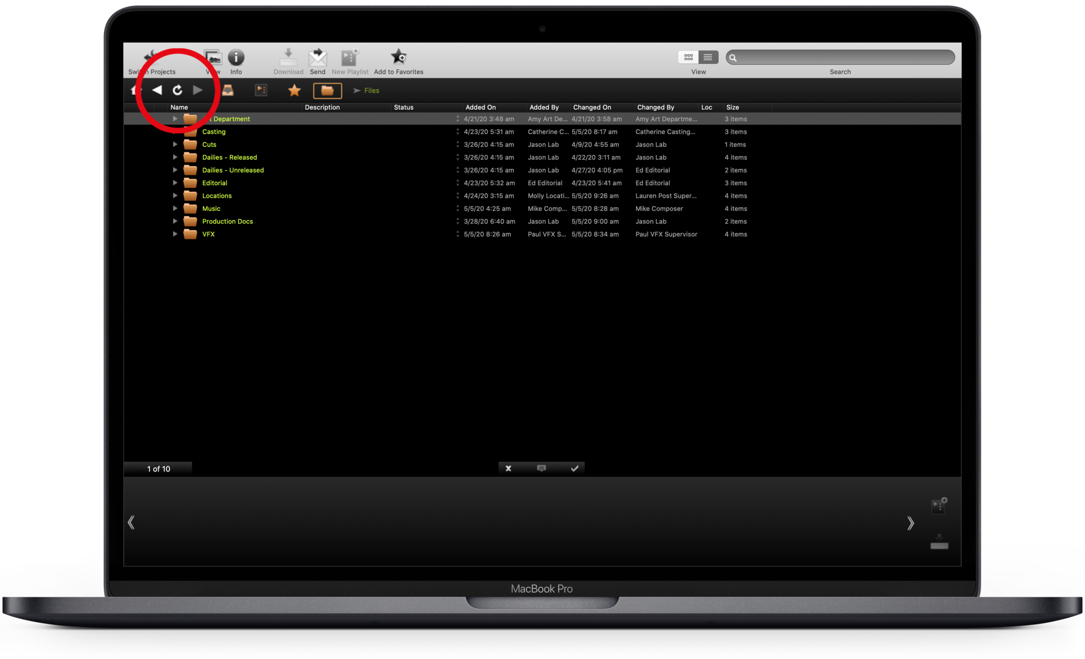 Use the forward and back buttons to move between your previous and next locations (similar to a web browser).