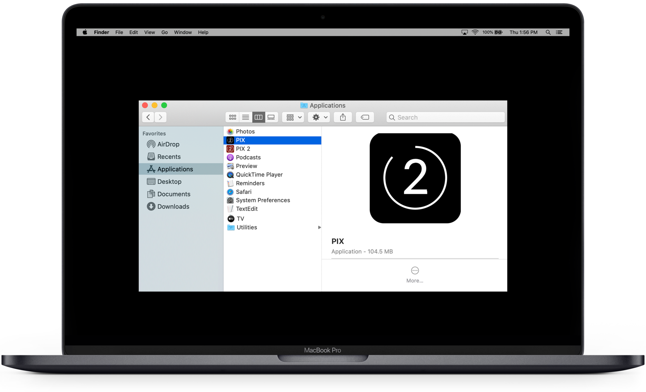 Once you've dragged PIX into your Applications folder, you can eject the installer and drag the .dmg file to the Trash.