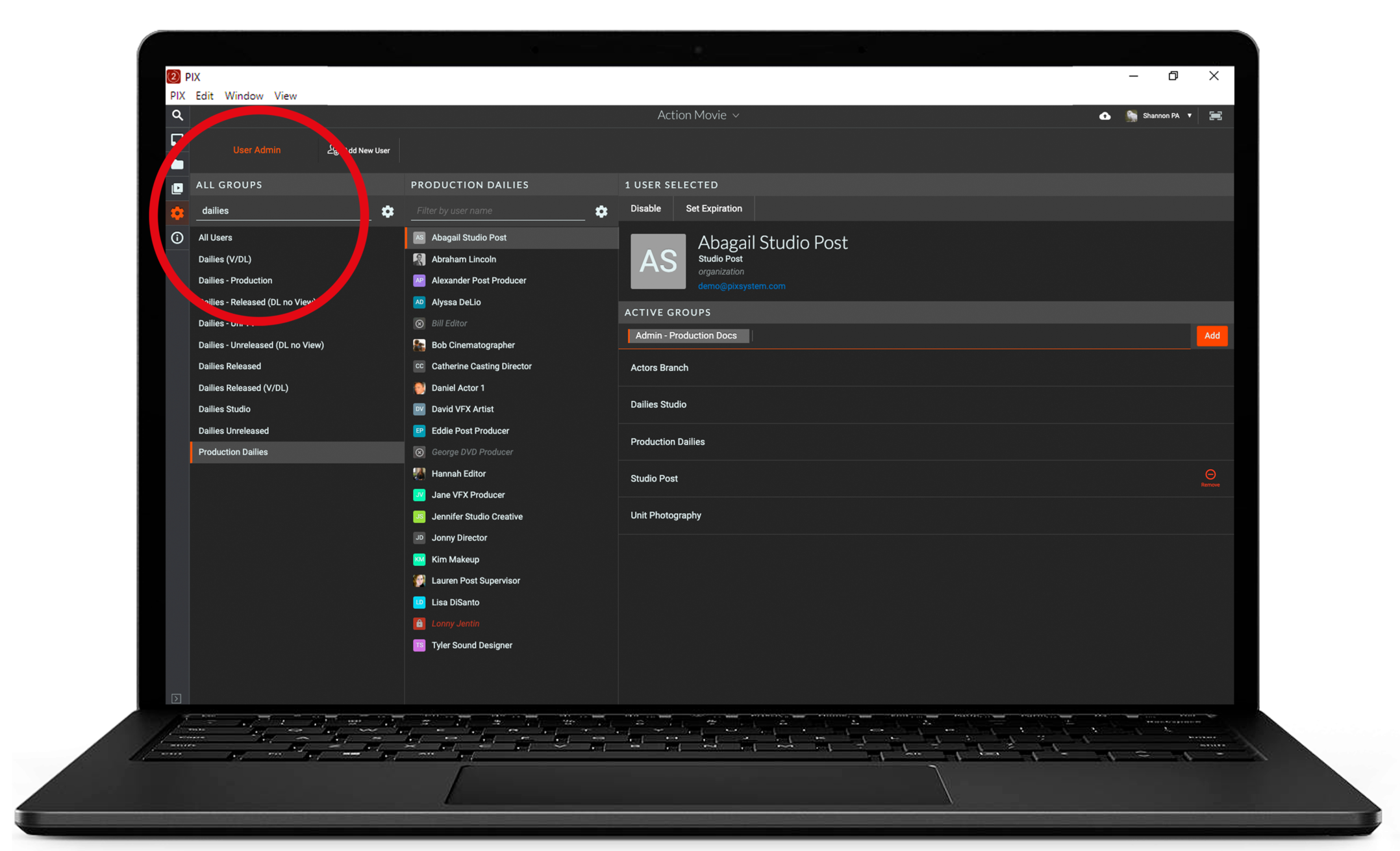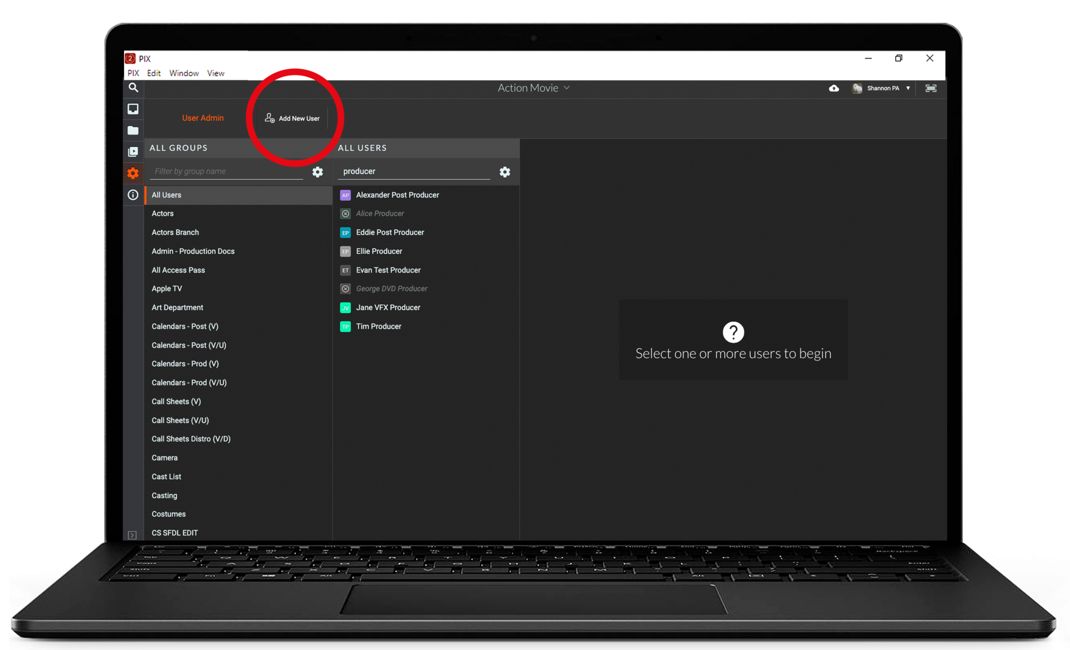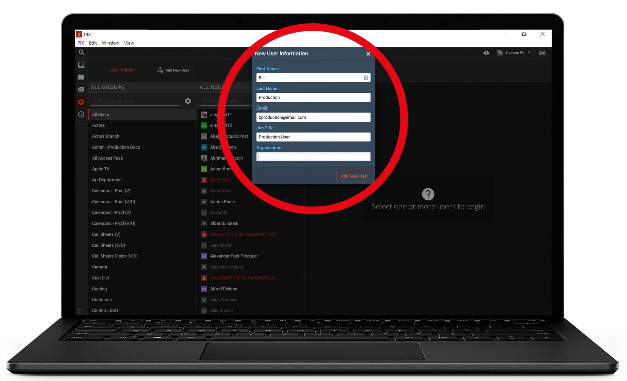 Specially permissioned users can add people to a project through the PIX User Admin Tool. When enabled to add users an Admin button will appear in the left navigation menu.