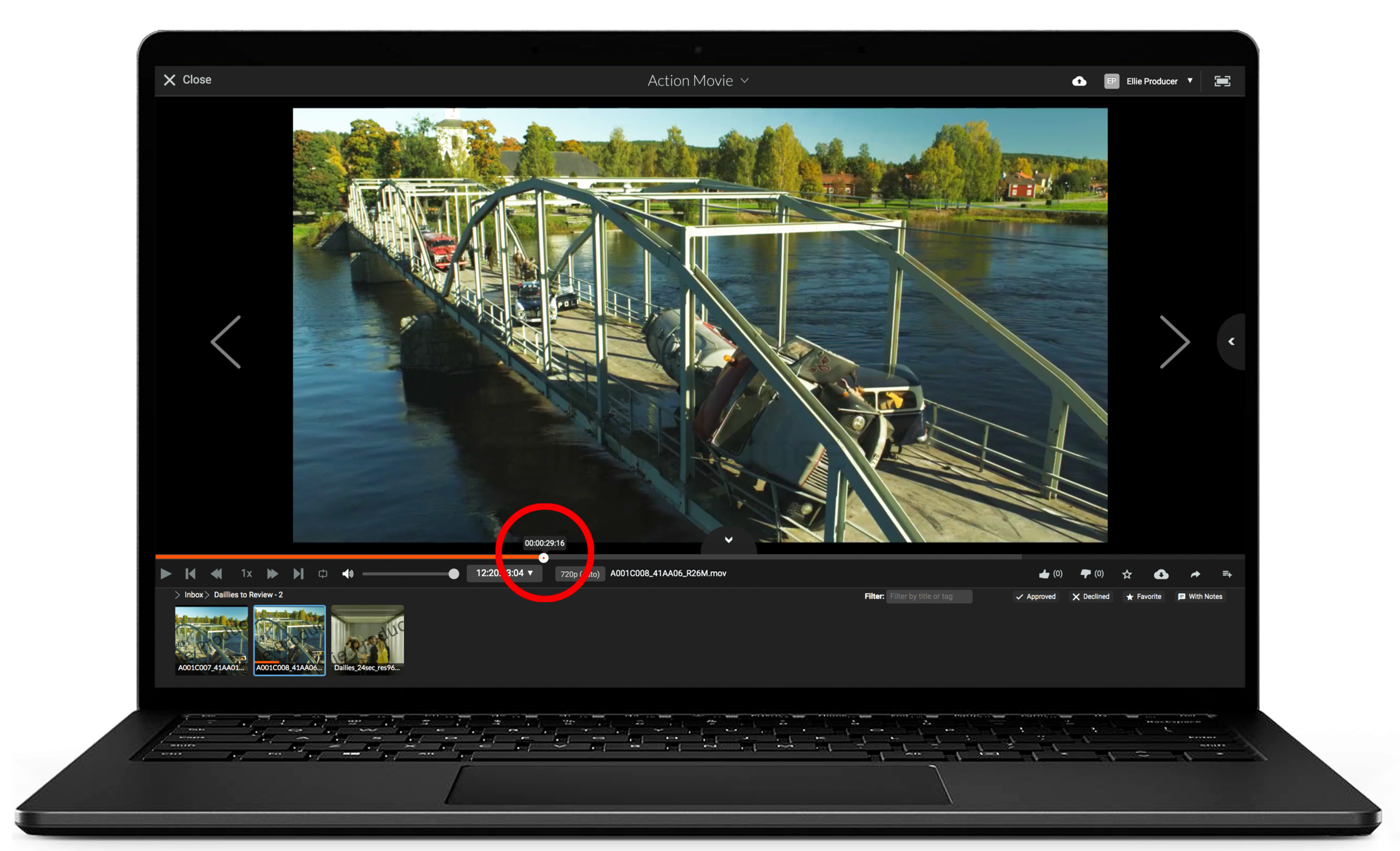 To navigate to a frame, drag the playback marker to the desired location on the timeline.