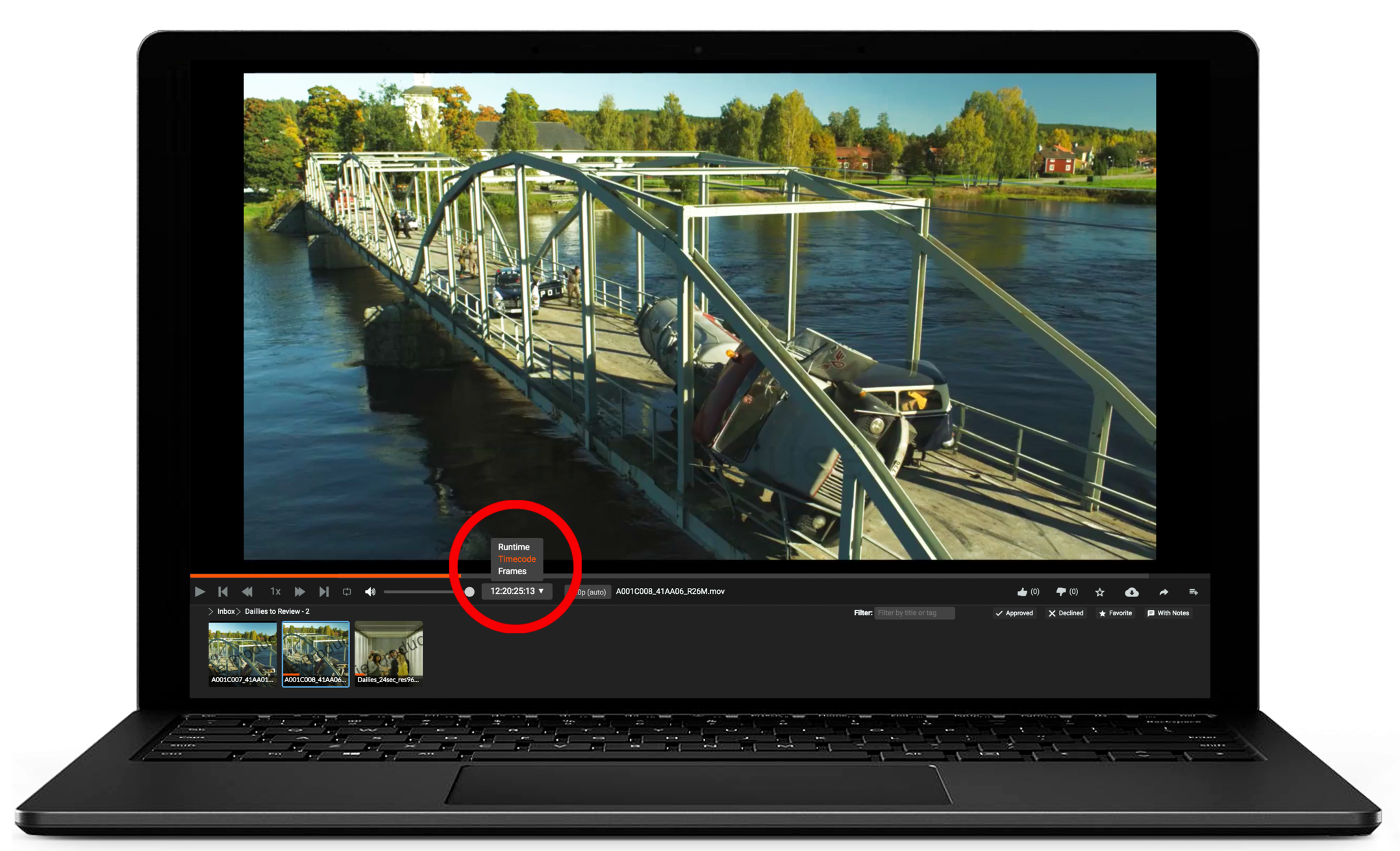 To toggle between the three, click the drop-down arrow to the right of the elapsed time display and select the desired time code display.