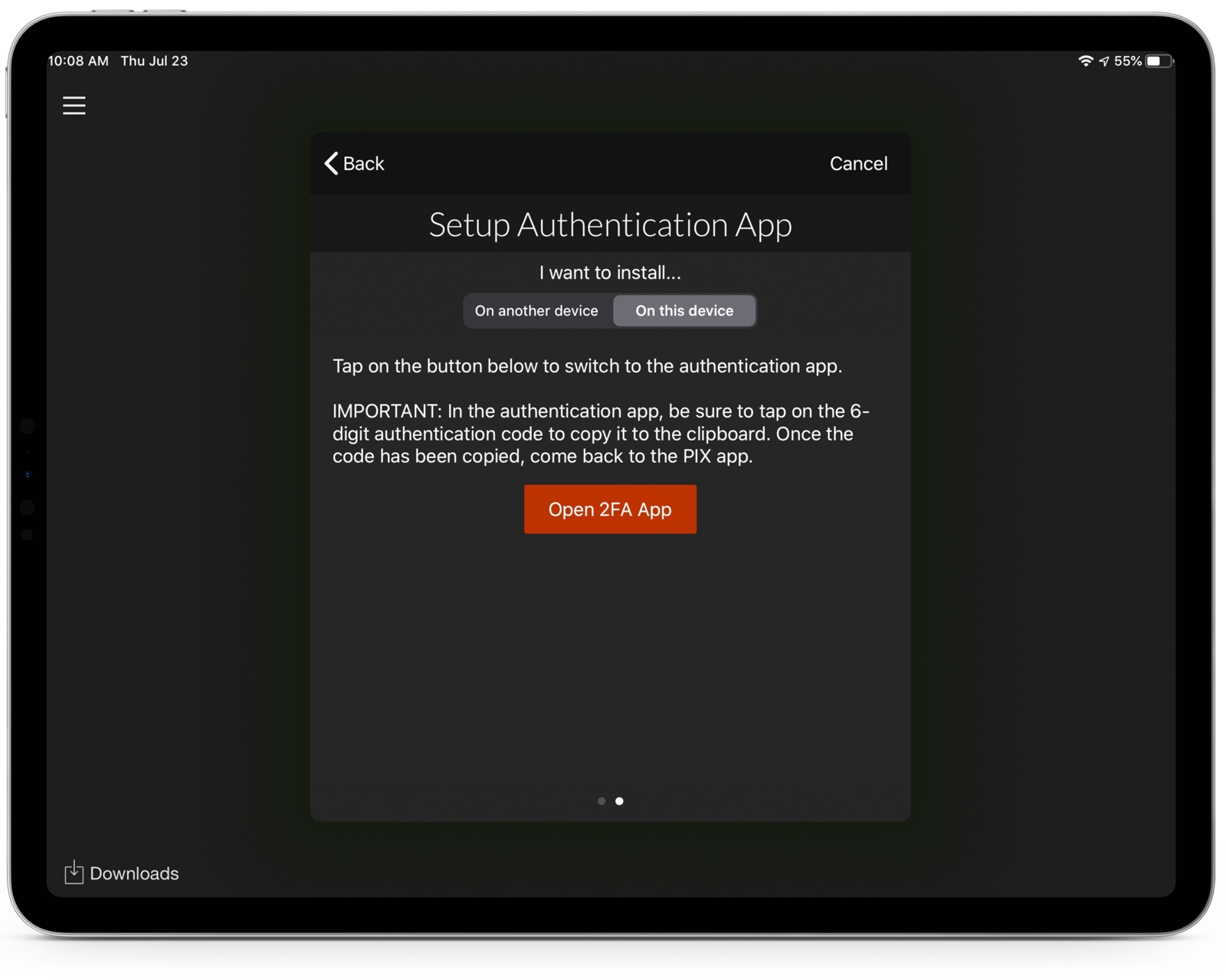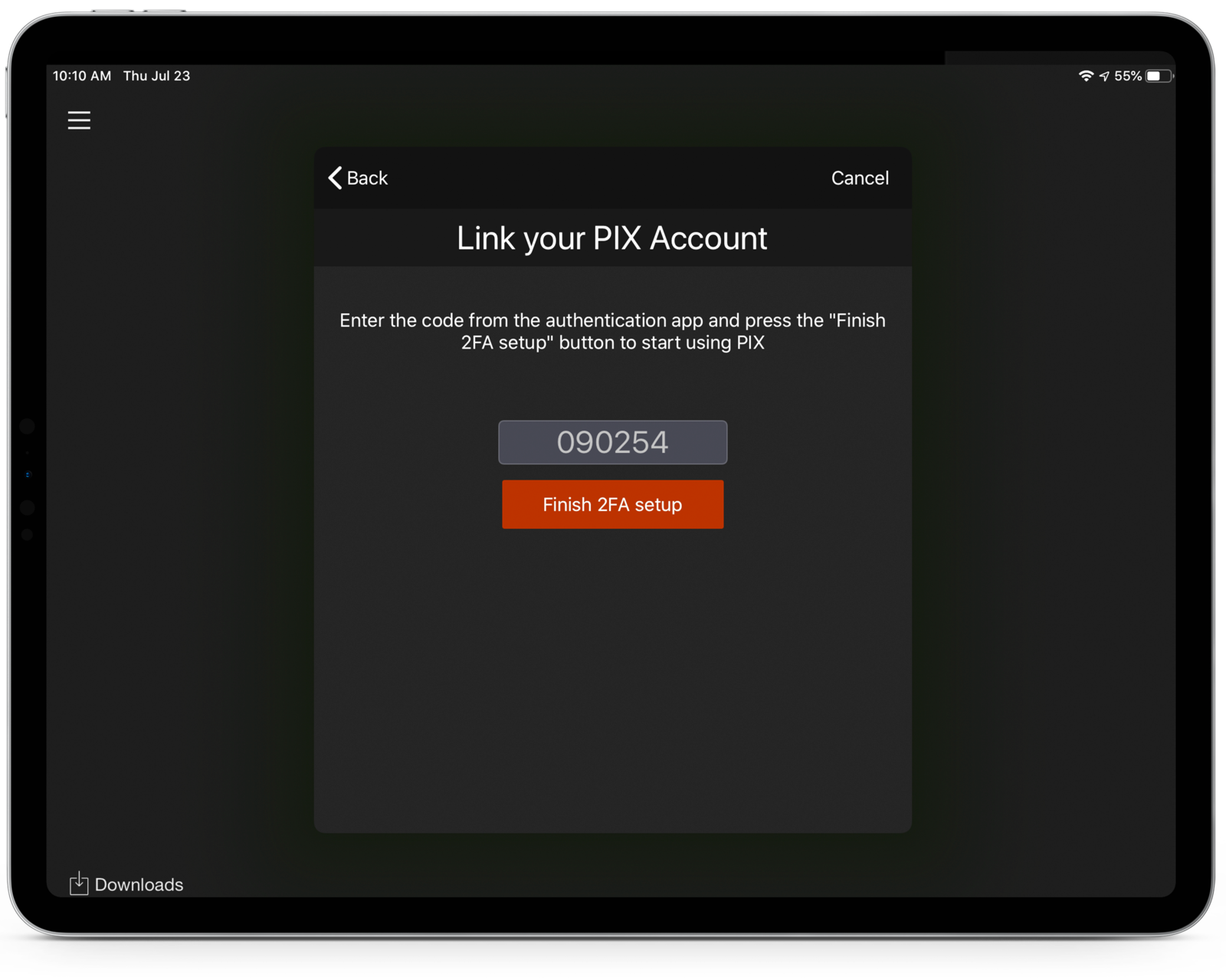 - Switch back to PIX and you should see that code copied into the 2FA field. If it is not already there, go back to your authentication app, tap, and paste it.
