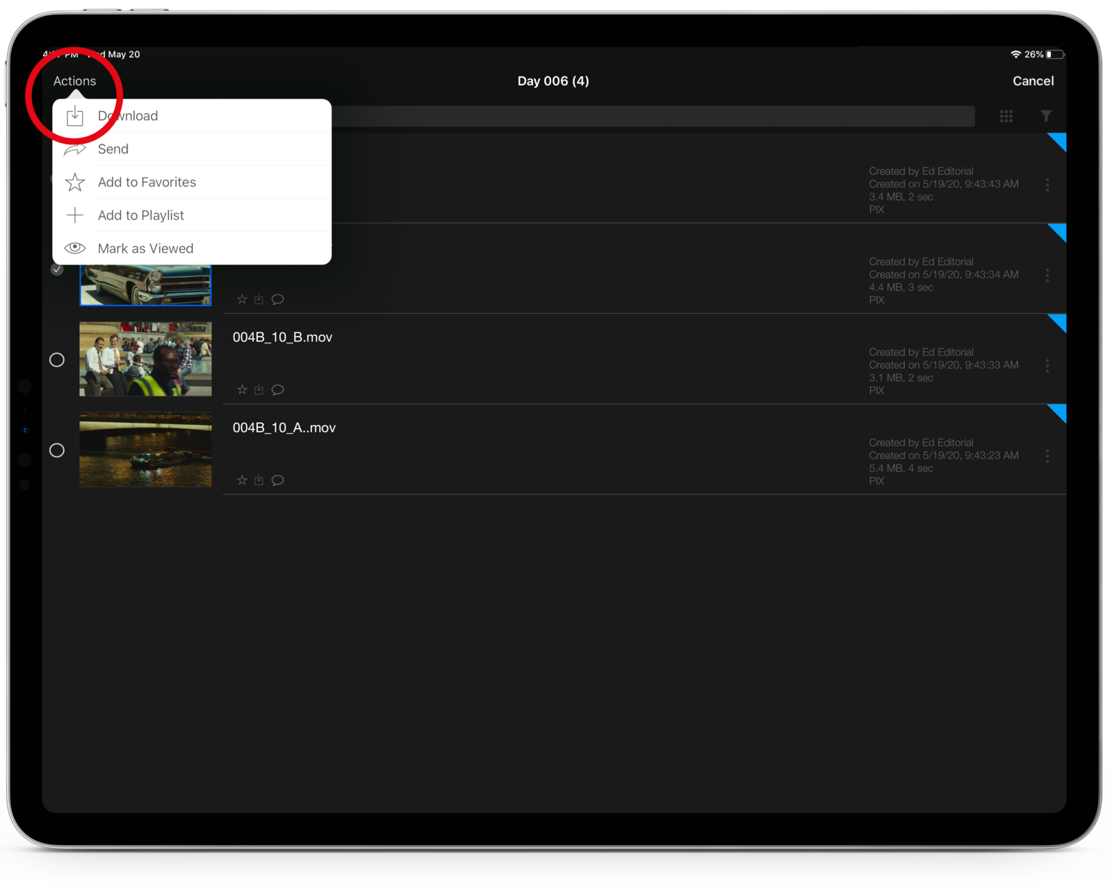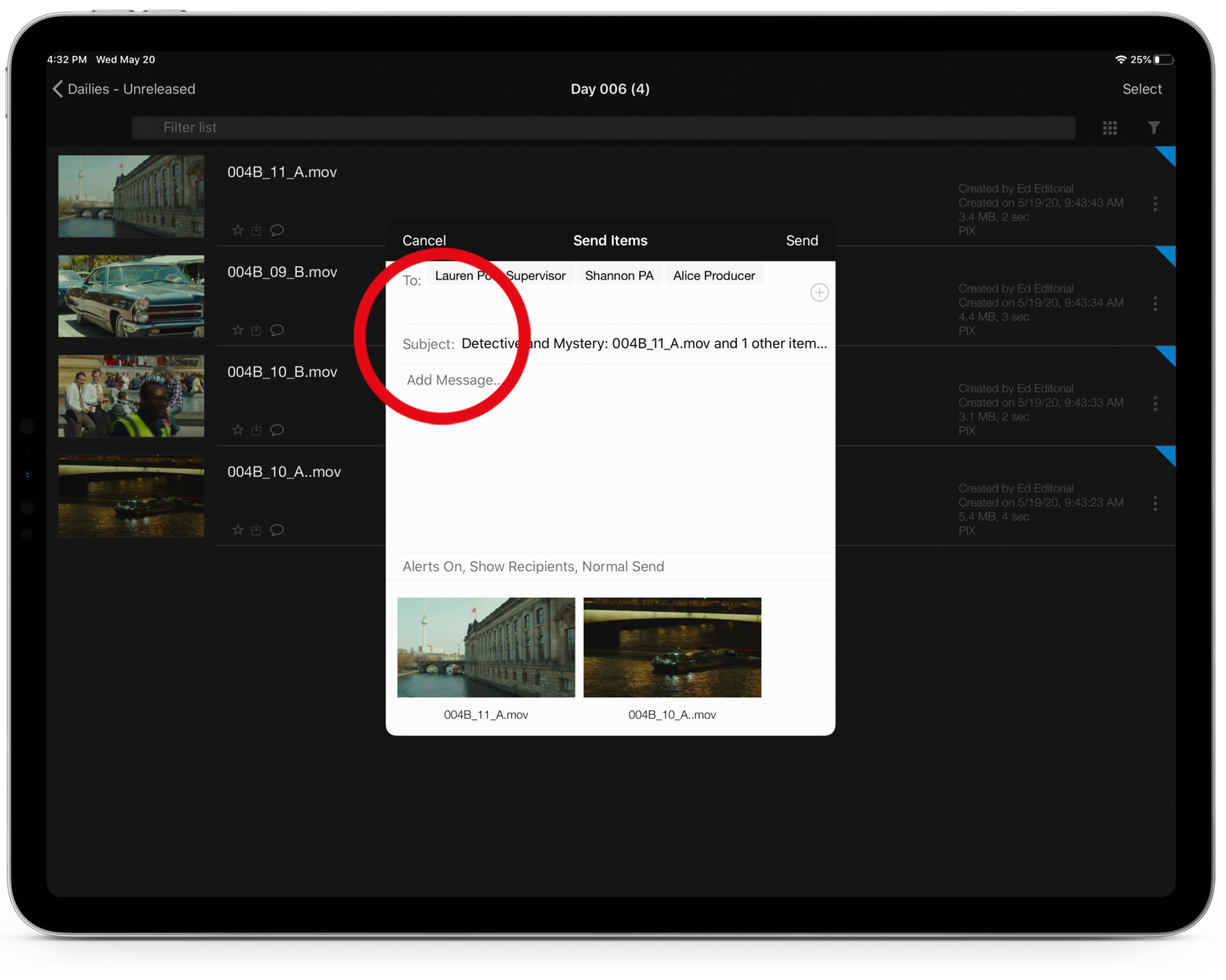 Tap on each item you wish to share. A green circle will appear to the left of the thumbnail.