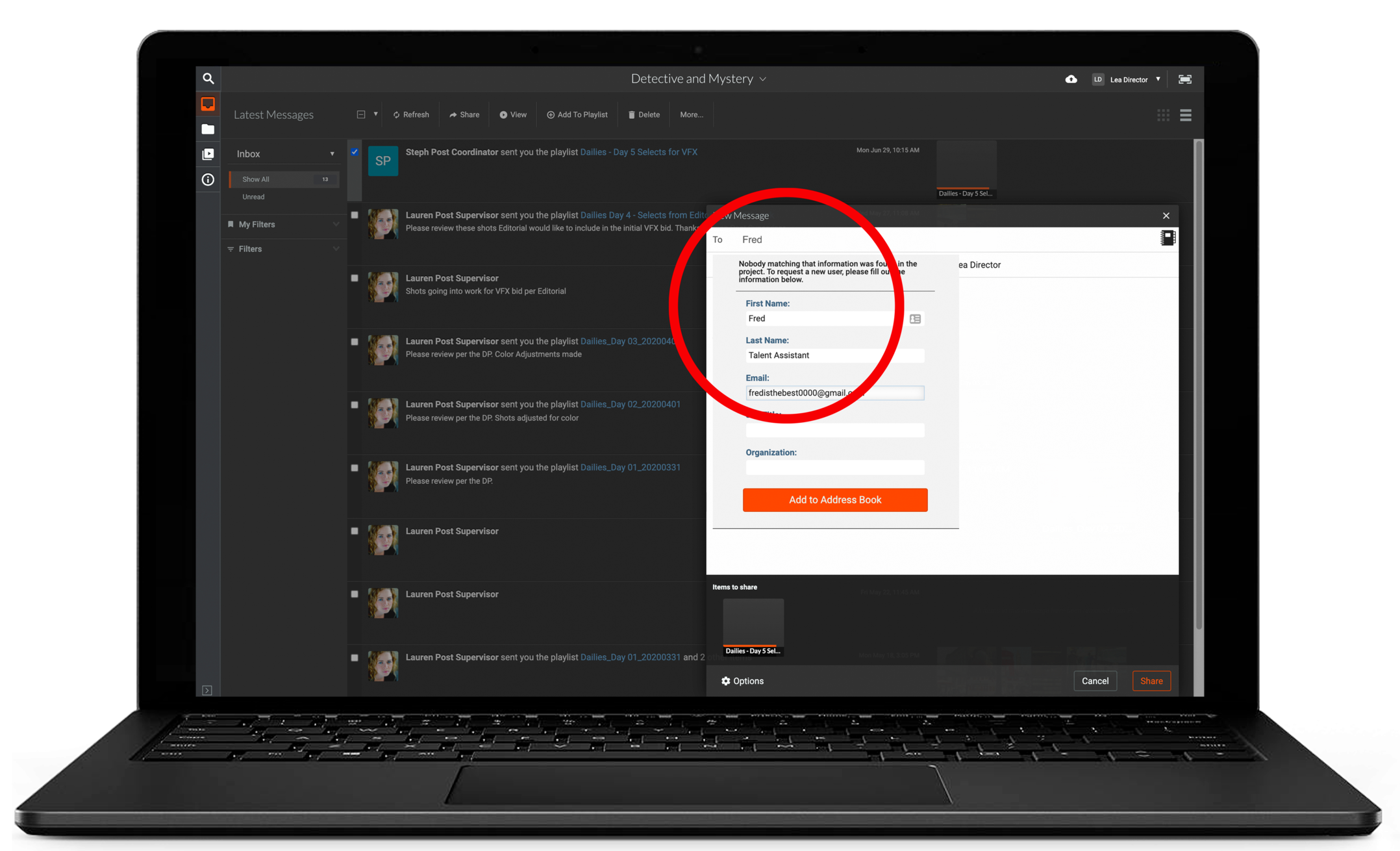 If you are enabled with the User Admin tool, you will be able to add new users to the project immediately following the same steps above and hitting Share.