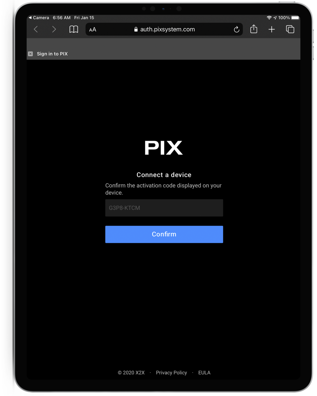 After entering your login credentials for PIX, you will be prompted to connect a device and confirm that the code displayed on your Apple TV matches the code in the box on the "Connect a device" web page.