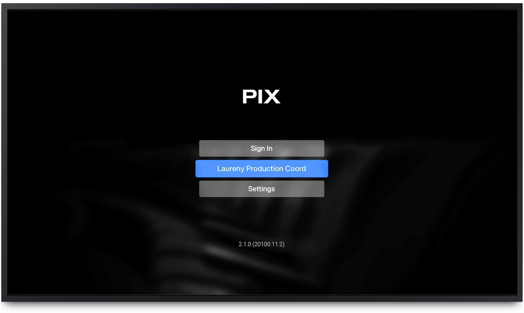 Once your PIN is confirmed, you will be signed into your account, and your account will be saved as a user for the PIX for tvOS application on the Apple TV.