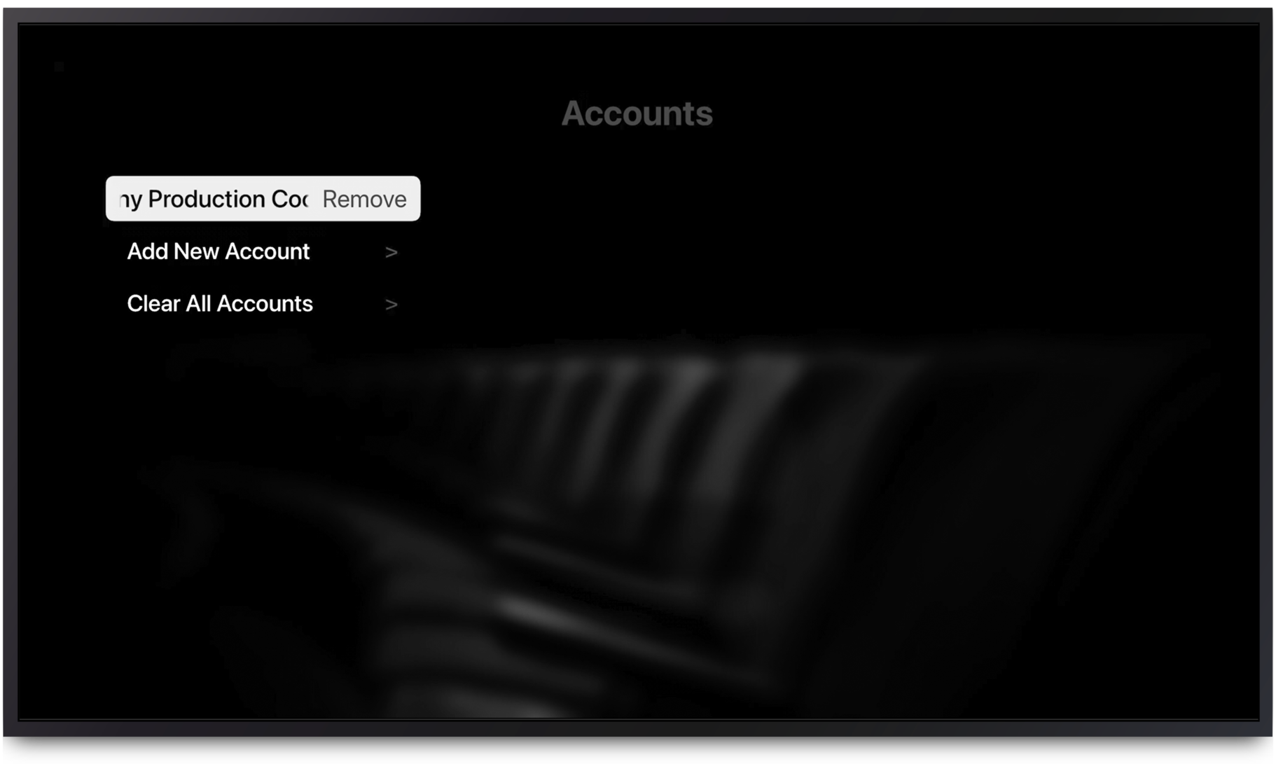To remove an account from the PIX for tvOS app on the Apple TV:
