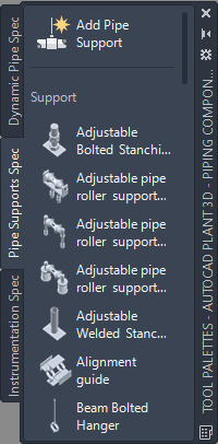 - If the Pipe Supports Spec is not displayed on the tool palette, enable plantdynamictoolpalette.