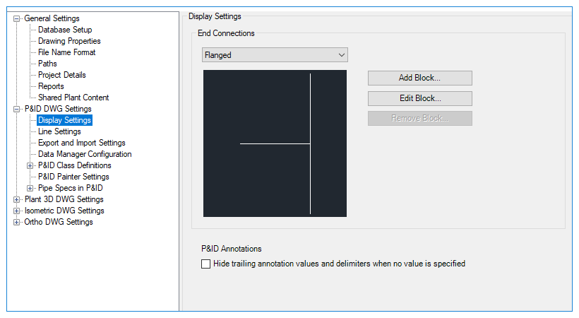 - In the Project Setup tree view, expand P&ID DWG Settings.