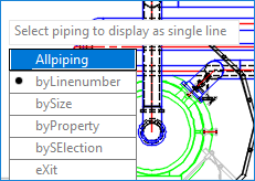 PLANTORTHOSINGLELINEPIPING - Displays the selected piping as a single line in ortho drawings.