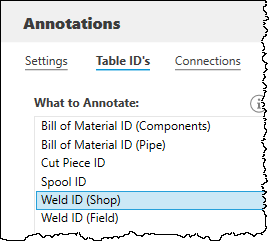 - Differentiate BOM ID annotation settings for pipe and non-pipe components, shop welds, and field welds.