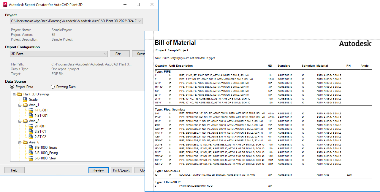Report Creator is a tool for generating parts lists, BOMs, or specification sheets, using data from P&ID or Plant 3D drawings. You can use the tool simply to run pre-configured reports, a very simple two-step process.