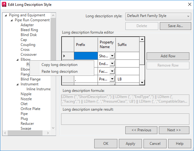 Lists all parts in an expandable hierarchical tree. If you right-click a part, you can copy the long description. If you right-click another part, you can paste the long description.