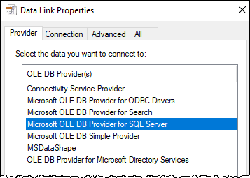 - Adds and configures the connection strings to data sources in the Data Link Properties dialog box.