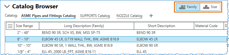 You can switch between the Family and Size tabs to display the components list by part families or part sizes.