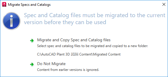 - In the Select Specs and Catalogs to Migrate dialog box, specify one or more files (for example, C:\AutoCAD Plant 3D 20xx Content\CPak ASME\ASME Valves Catalog.pcat).