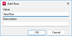 Defines the value for the new entry to be displayed in the drop-down list for the property in these locations: Project Setup dialog box, Data Manager, Assign Tag dialog box, and Properties palette.