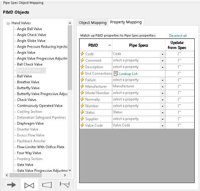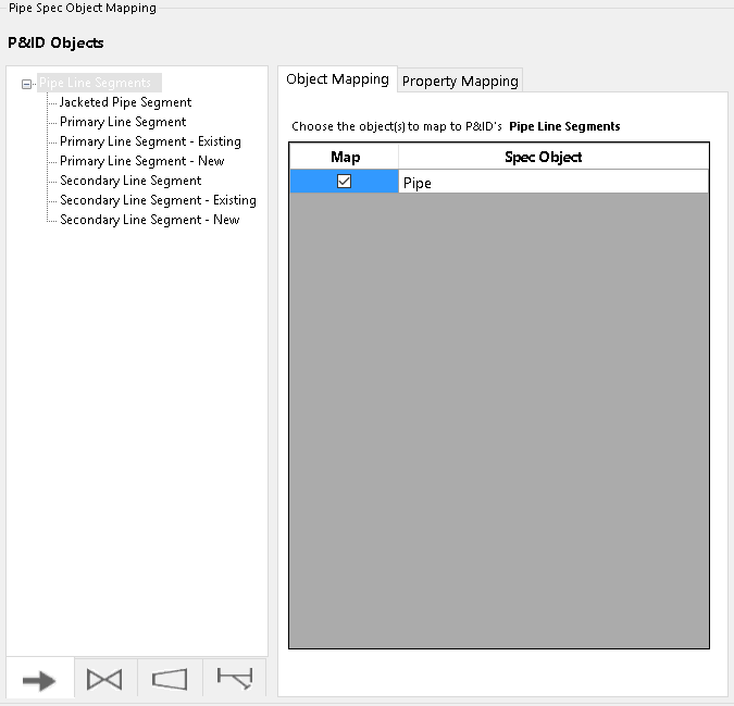 Specifies the mapping for a P&ID object to a matching pipe spec object.
