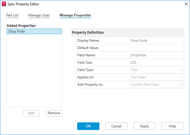 Adds new properties and sets property definitions for the current selection or for all parts in a spec.