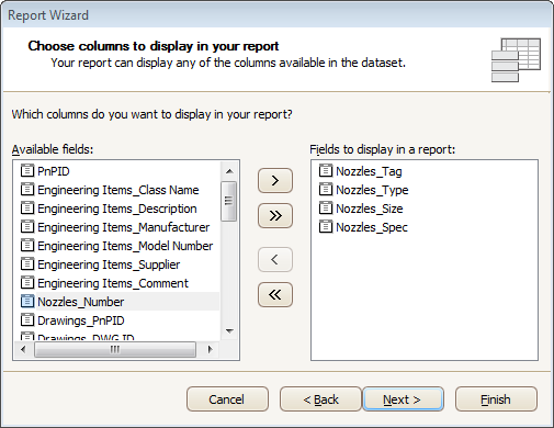 The list on the left-hand side shows all available fields (attributes). To select the required fields, double-click them or drag them to the list box on the right-hand side. Another way to select fields is to use arrow buttons to move them back and forth.