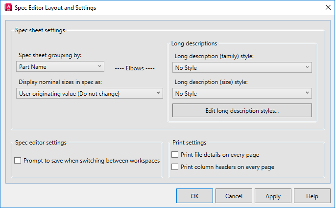 Sets the style for the Long Description (Family) property of the current spec sheet.