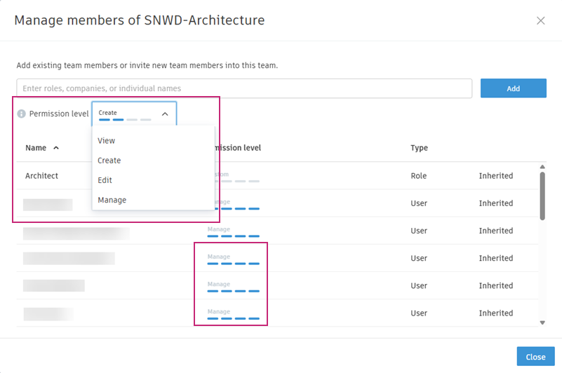 | Manage | Manage | View+Download | Manage (Overwrite, not inherited) | BIM manager |