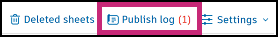 The publish log contains a chronological record of all activities which are in progress or completed in the sheet publishing process. You can view the status of each entry and take further action relevant to that status. For example, access and view sheets which are published, resume the publishing process if this is not completed, and remove entries.