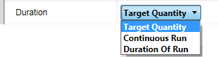 Set the duration of your simulation to Target Quantity, Continuous Run, or Duration of Run, from the Settings panel.
