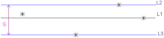 The distance between L2 and L3 (S) is the straightness of the line. If this distance is greater than the maximum that you specify, the straightness is out-of-tolerance.