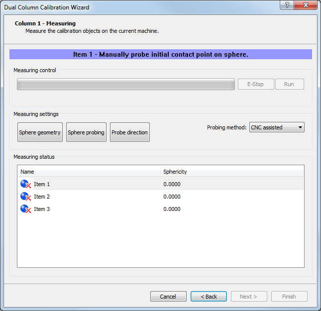 - In the Initial contact list, specify the direction from which you will manually probe the sphere.