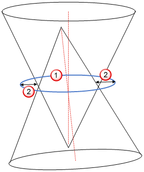 To calculate the circle at the intersection of two co-axial cones, or a co-axial cone and cylinder: