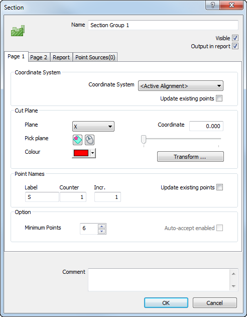 Use the Section dialog to specify the details of the Section group.