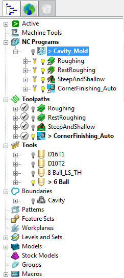 If the NC program Cavity_Mold remains active, the toolpath is automatically added to it: