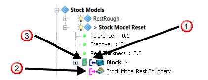When an entity is applied to a stock model, it produces a Stock Model State. This represents the state of the stock material at a particular point in the machining process and is defined by the operations of the currently applied entities in the stock model.