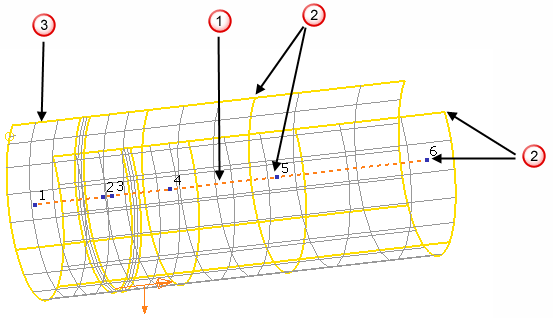 The spine is the reference line that determines where the data sections (laterals) are positioned in space. The spine is defined in terms of points. Every spine point must have an associated section